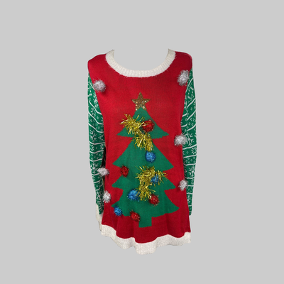 Jólapeysa með jólatré og glimmerdúskum