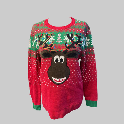 Jólapeysa með jólahreindýri og bjöllum