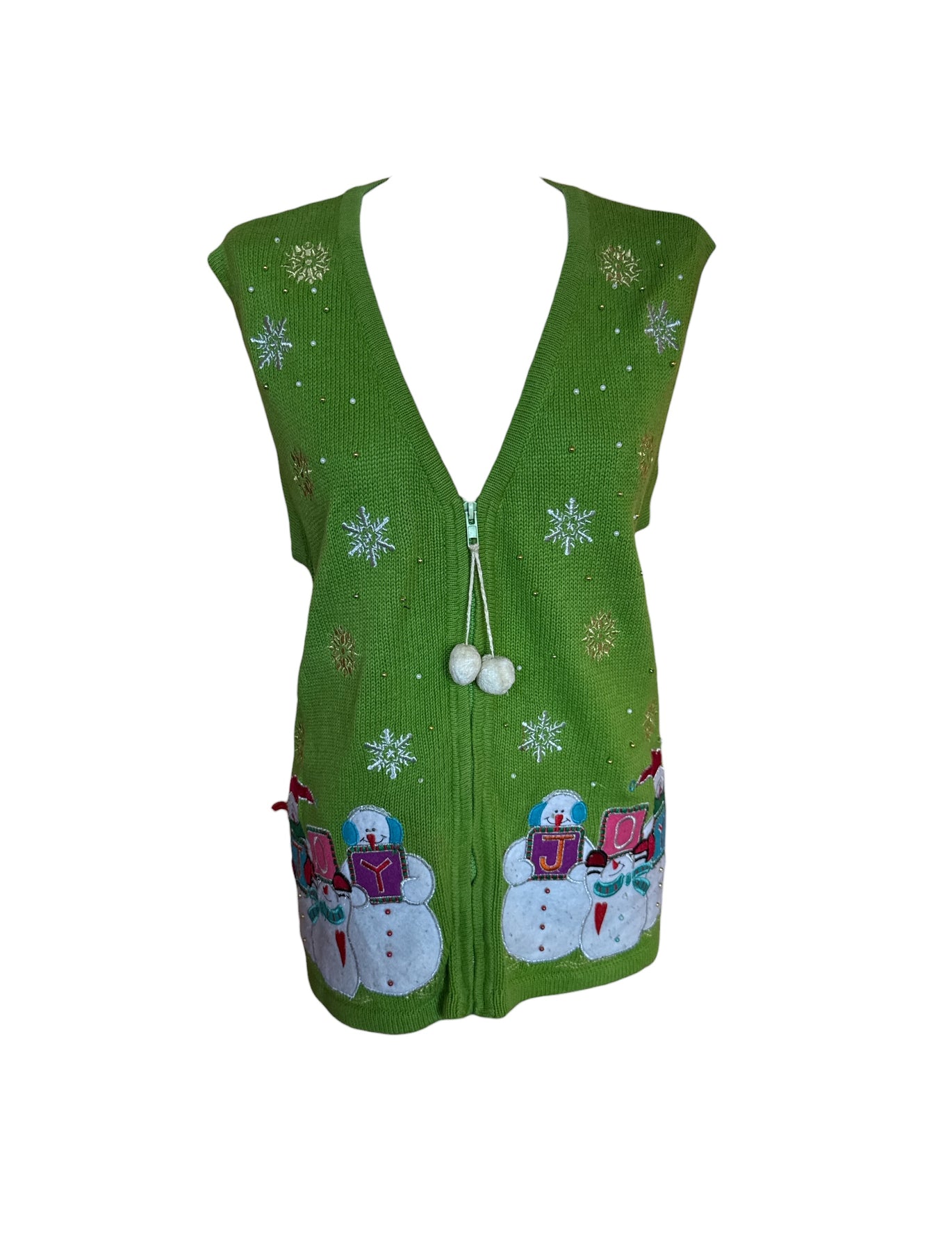 Grænt jólavesti með jólasveinum og snjókornum, rennilás