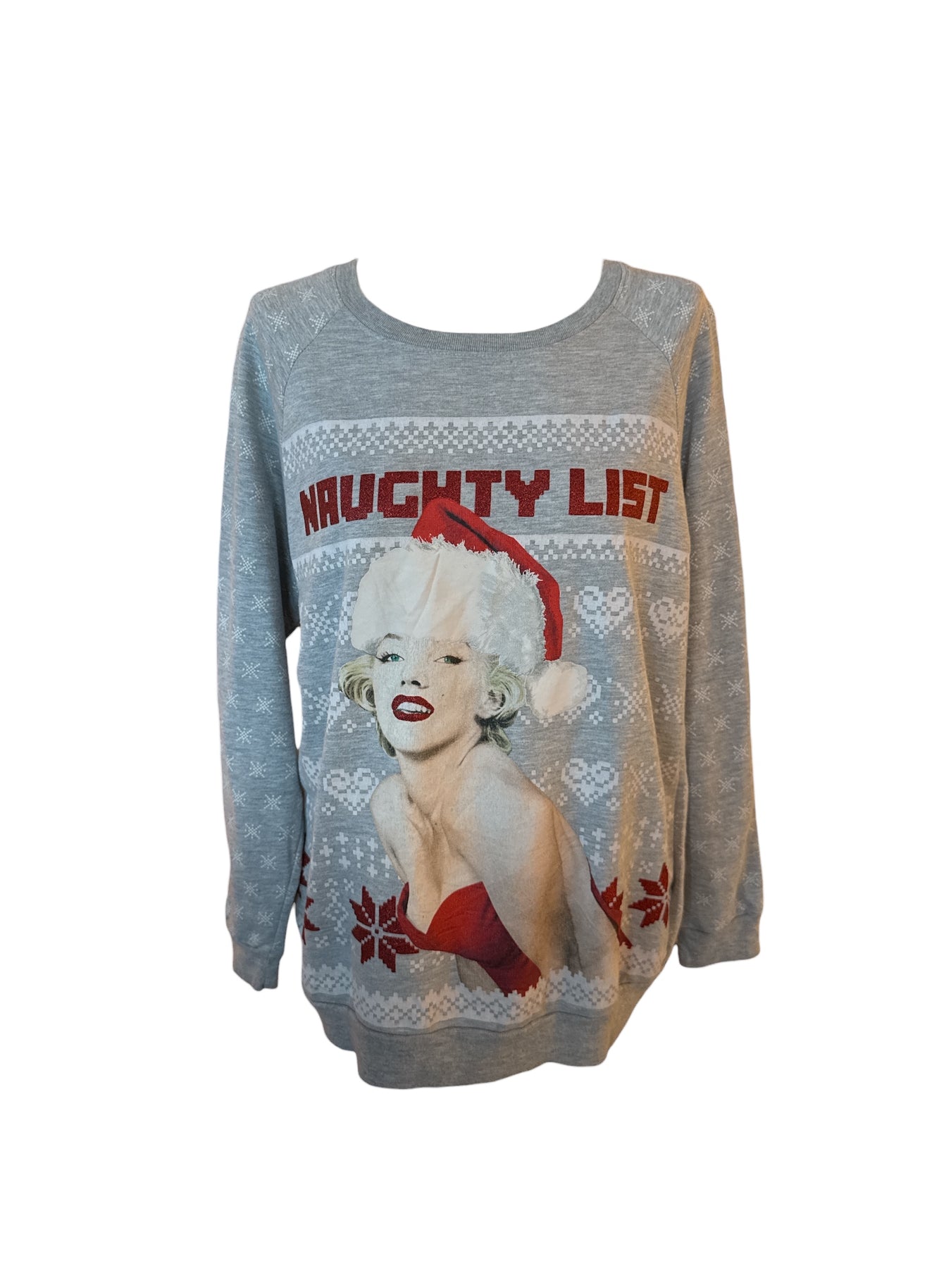Grá jogging jólapeysa með mynd af Marilyn Monroe