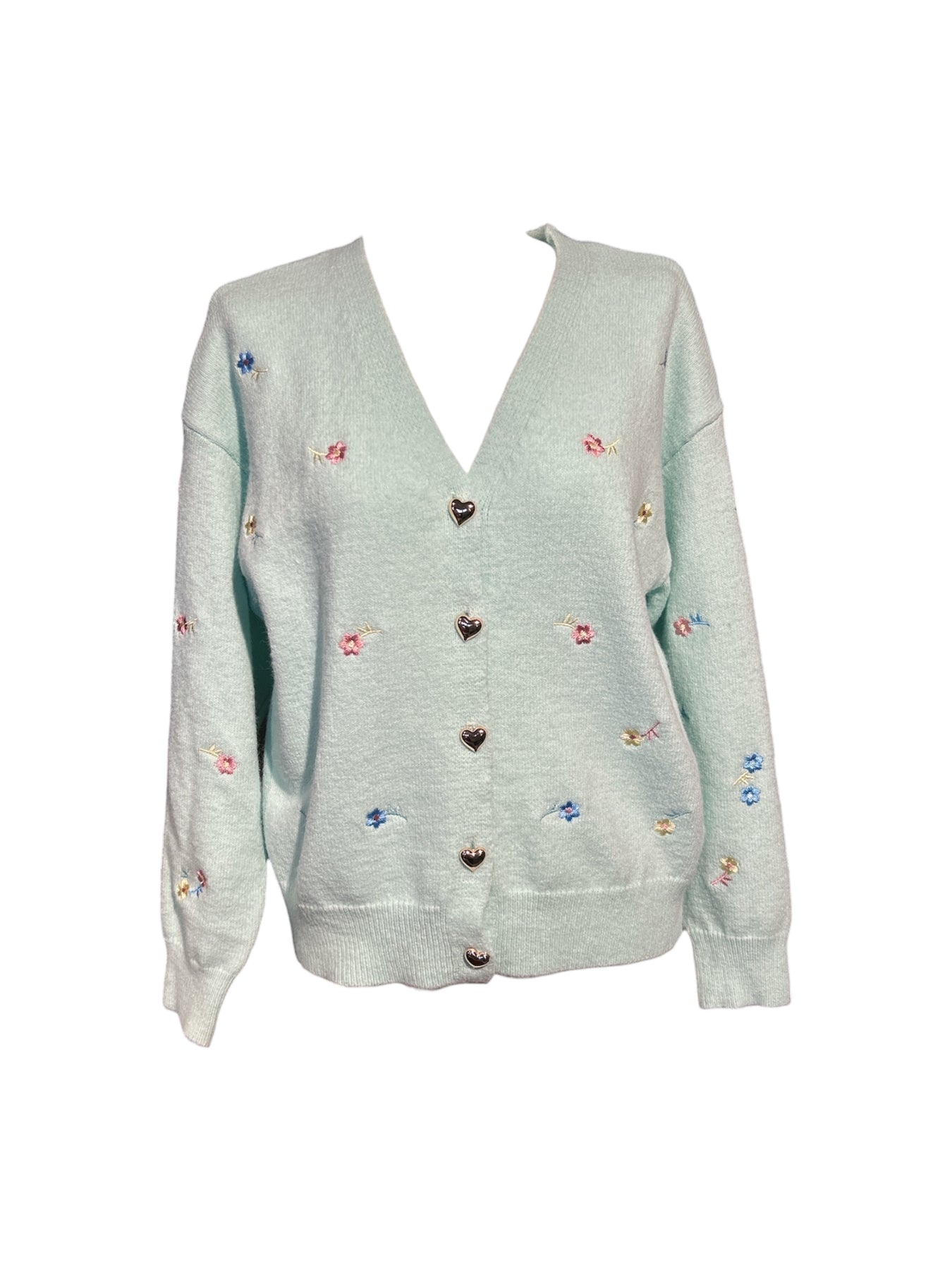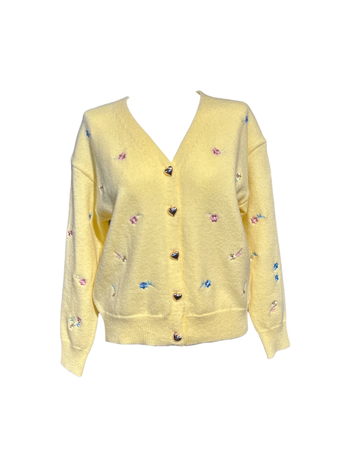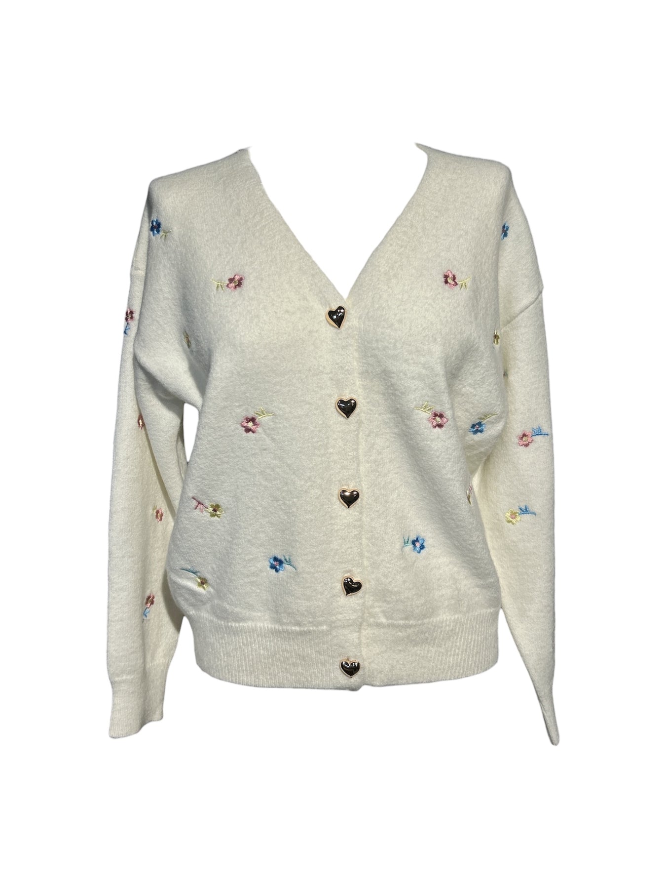 Hneppt golla með hjartatölum og blóma útsaum.