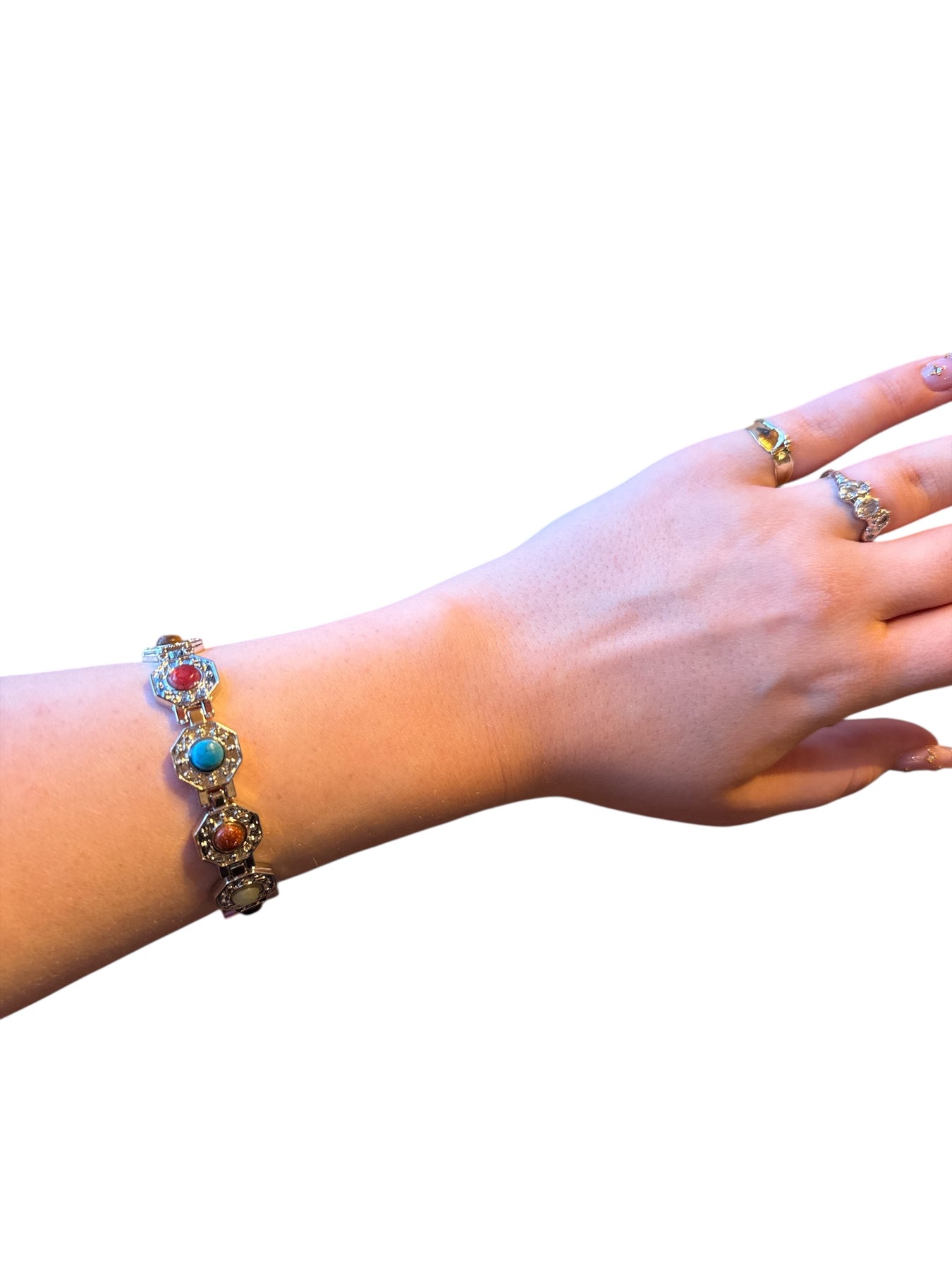 Silfrað armband með litríkum steinum