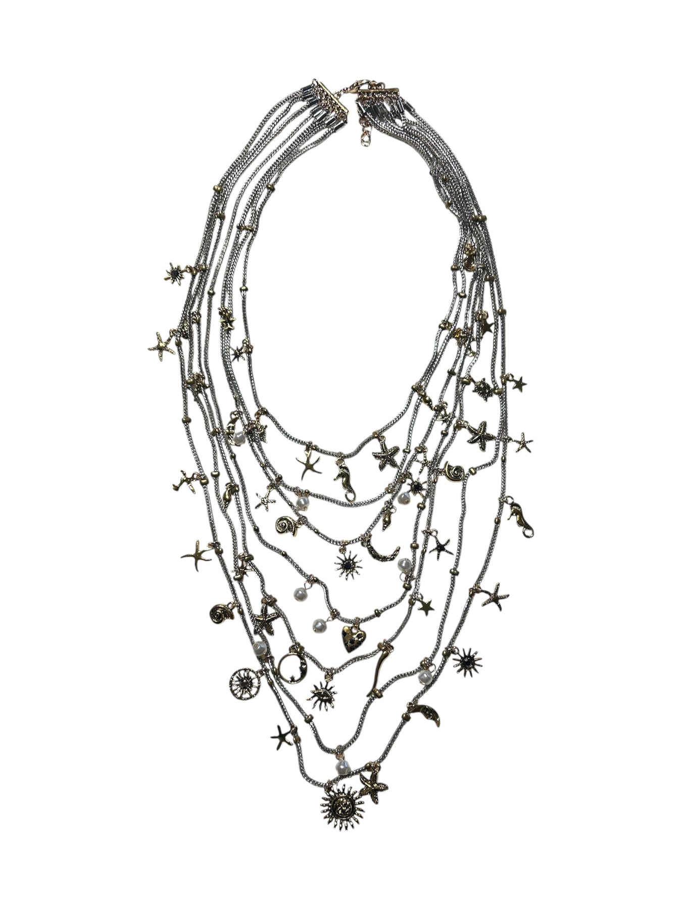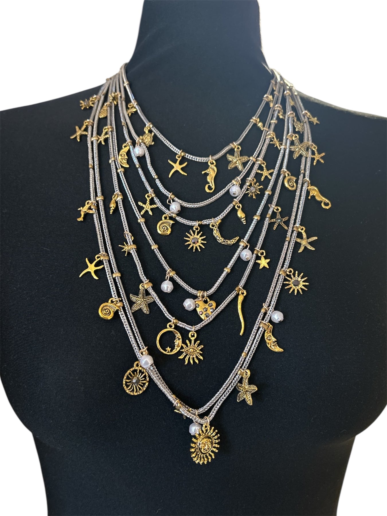 Hálsmen - silfrað með gull charms