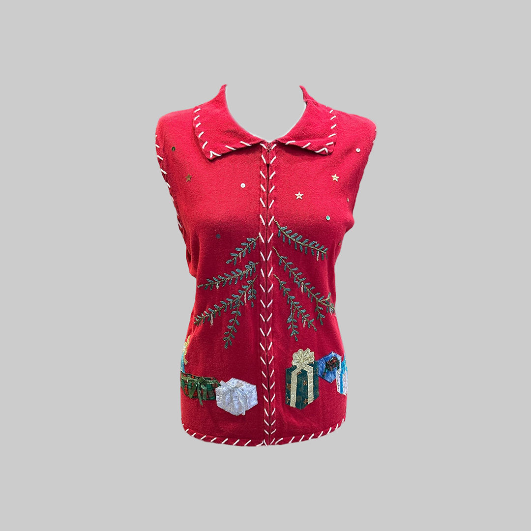 Jólavesti með greinum og pökkum