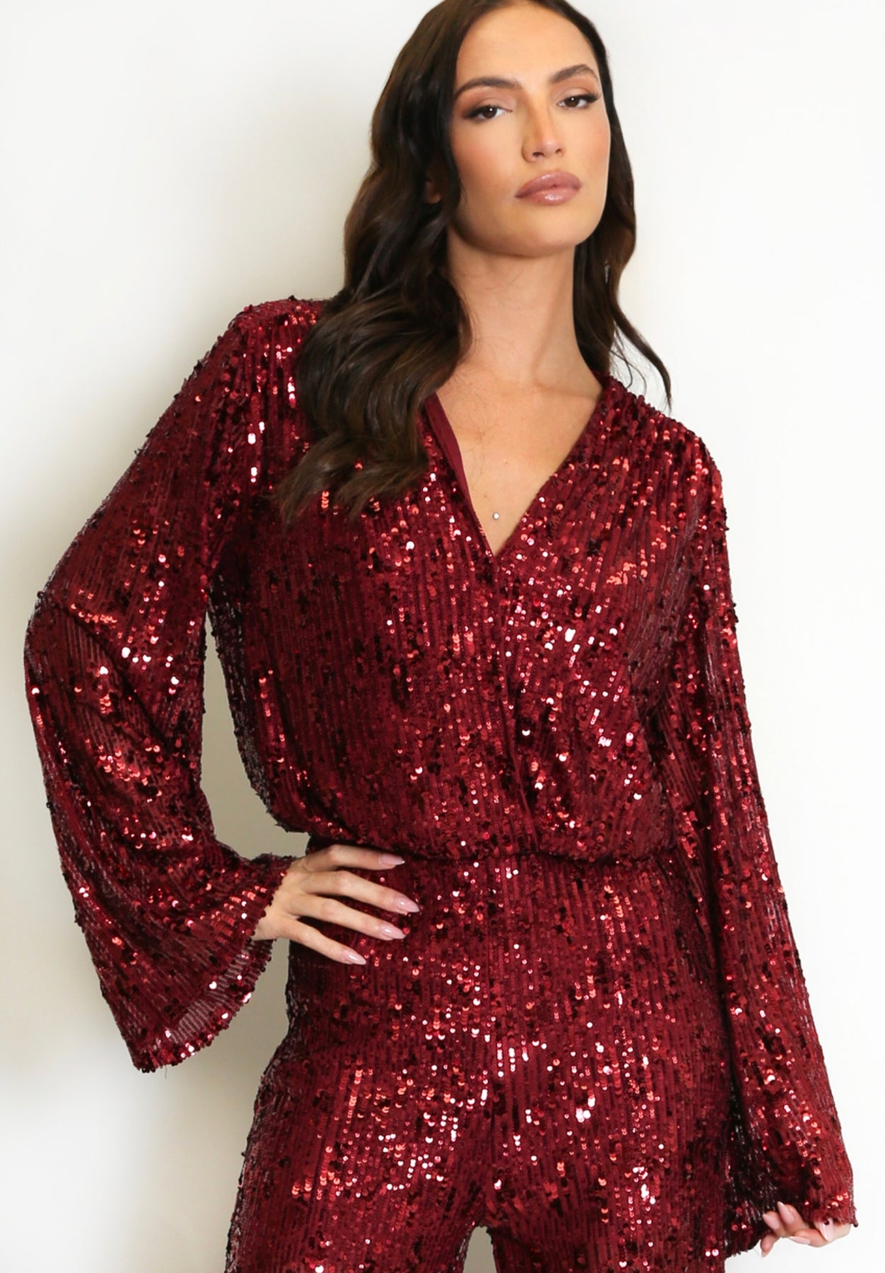 Falleg pallíettublússa í stíl við buxur sem eru líka til hjá okkur